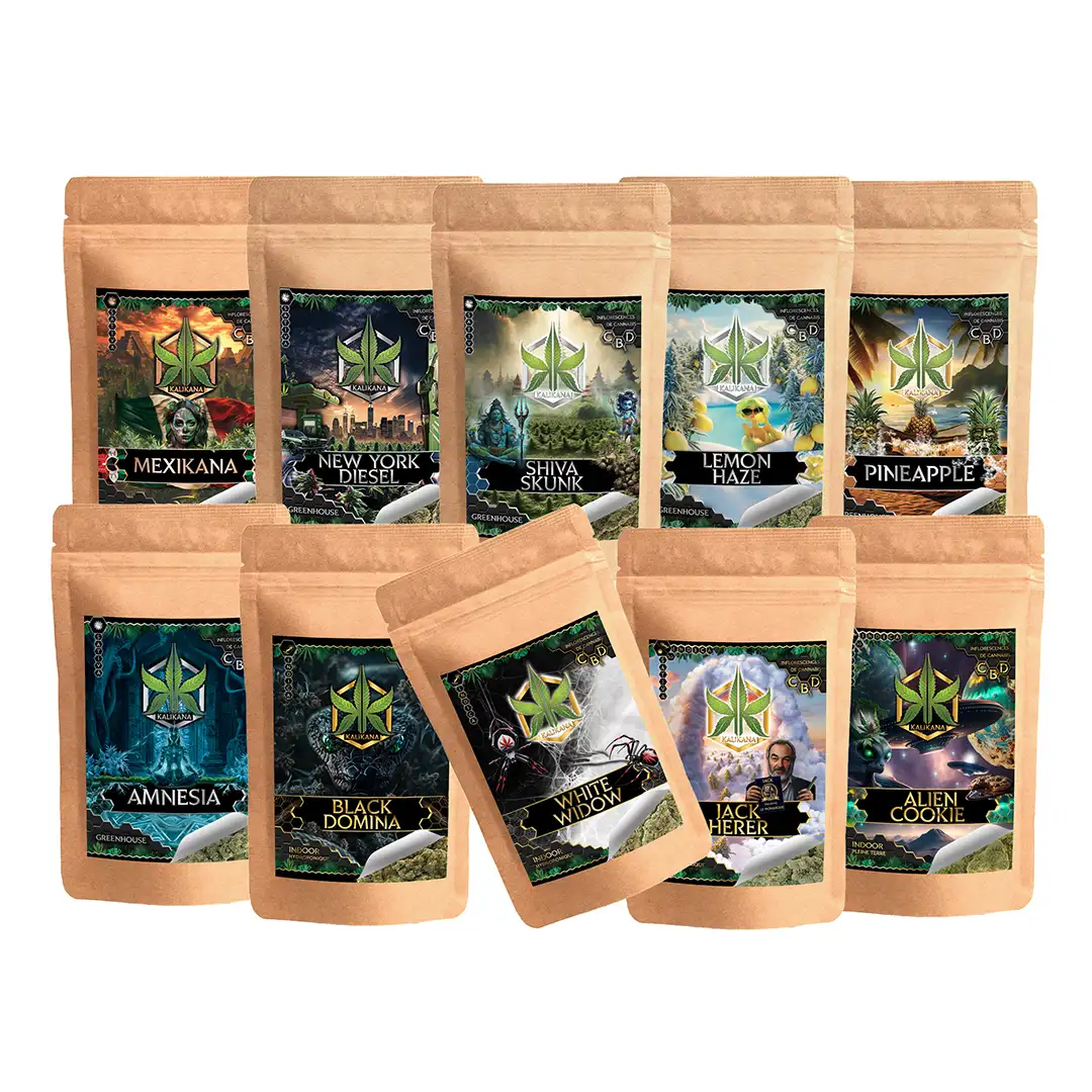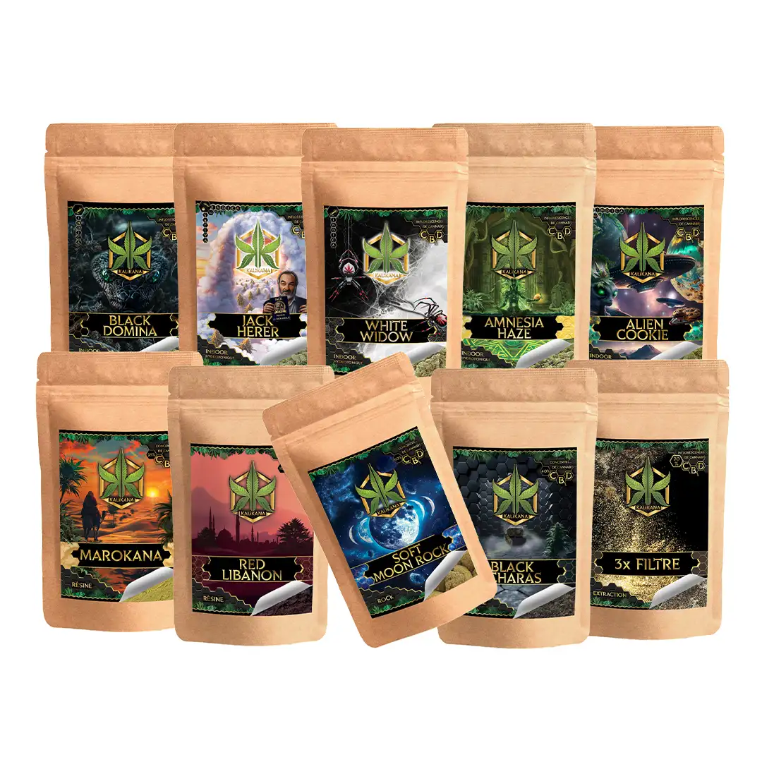 Vous débutez dans la consommation de chanvre et vous hésitez sur la variété à choisir ? Notre Pack Kali Mix 10g est fait pour vous. Il offre un voyage sensoriel complet avec 10 variétés d’1g chacune, couvrant les trois méthodes de culture : outdoor (Mexikana), greenhouse (New York Diesel, Shiva Skunk, Lemon Haze, Pineapple, Amnesia) et indoor (Black Domina, White Widow, Jack Herer, Alien Cookie).