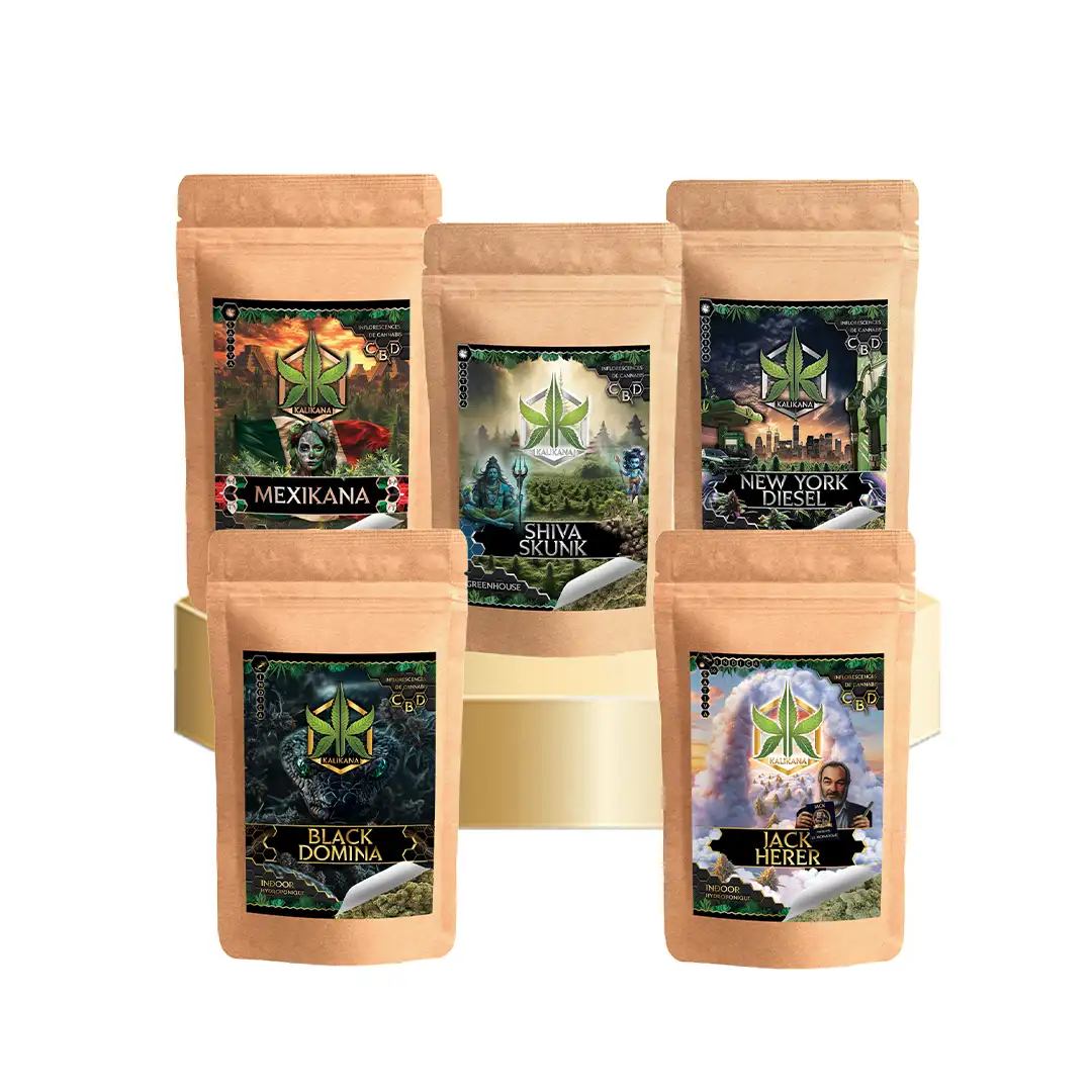 Votre journée est chargée et votre esprit surchargé ? Nos packs vous aident à retrouver un équilibre doux, sans vous déconnecter. Optez pour des fleurs à dominante terpénique relaxante, comme celles du Mini Pack Kali Premium 5g, qui contient des variétés réputées pour leur profil apaisant : Amnesia Haze (douce, mentolée), White Widow (florale, enveloppante) ou Black Domina (terreuse, réconfortante).